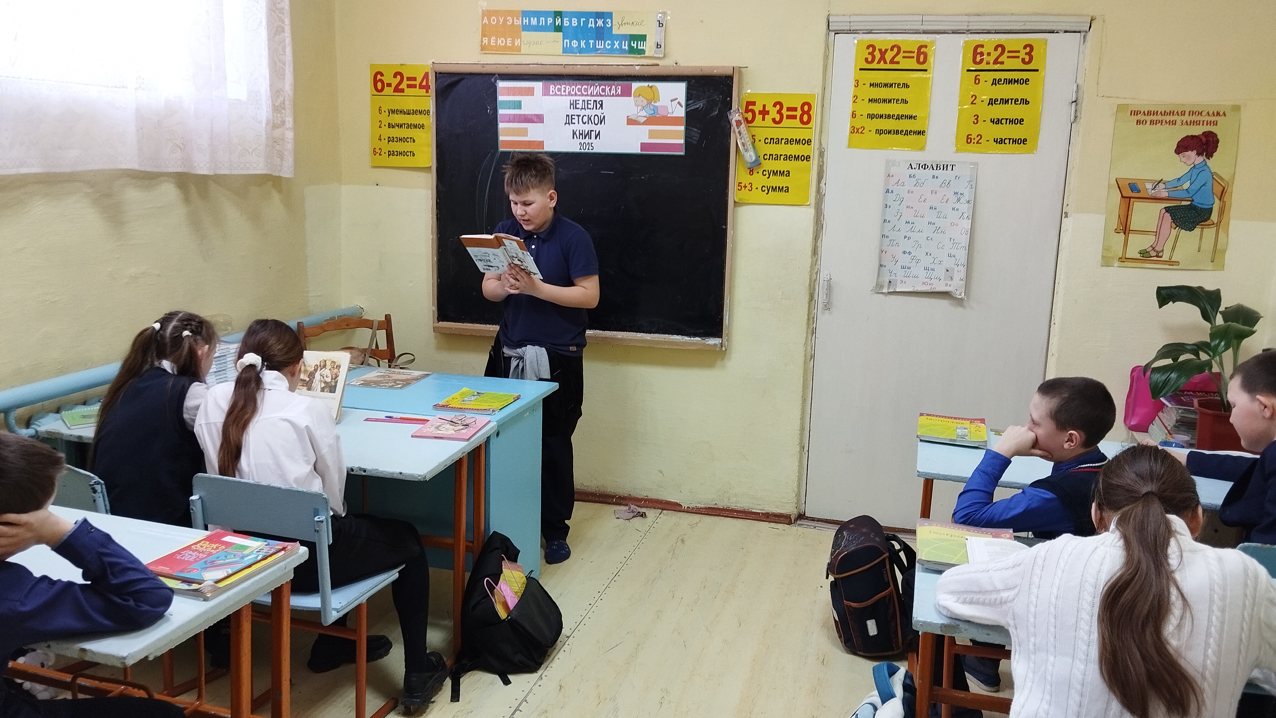 В литературном марафоне "Дети читают книги о войне" приняли участие ученики 5 класса. Библиотекарь познакомила детей со списком рекомендованной литературы для среднего школьного возраста на военную тему. Желающие прочитали отрывки из любимых произведений: "Девочка из города" Любови Воронковой, " Сын полка" Валентина Катаева, "Сто рассказов о войне" Сергея Алексеева.