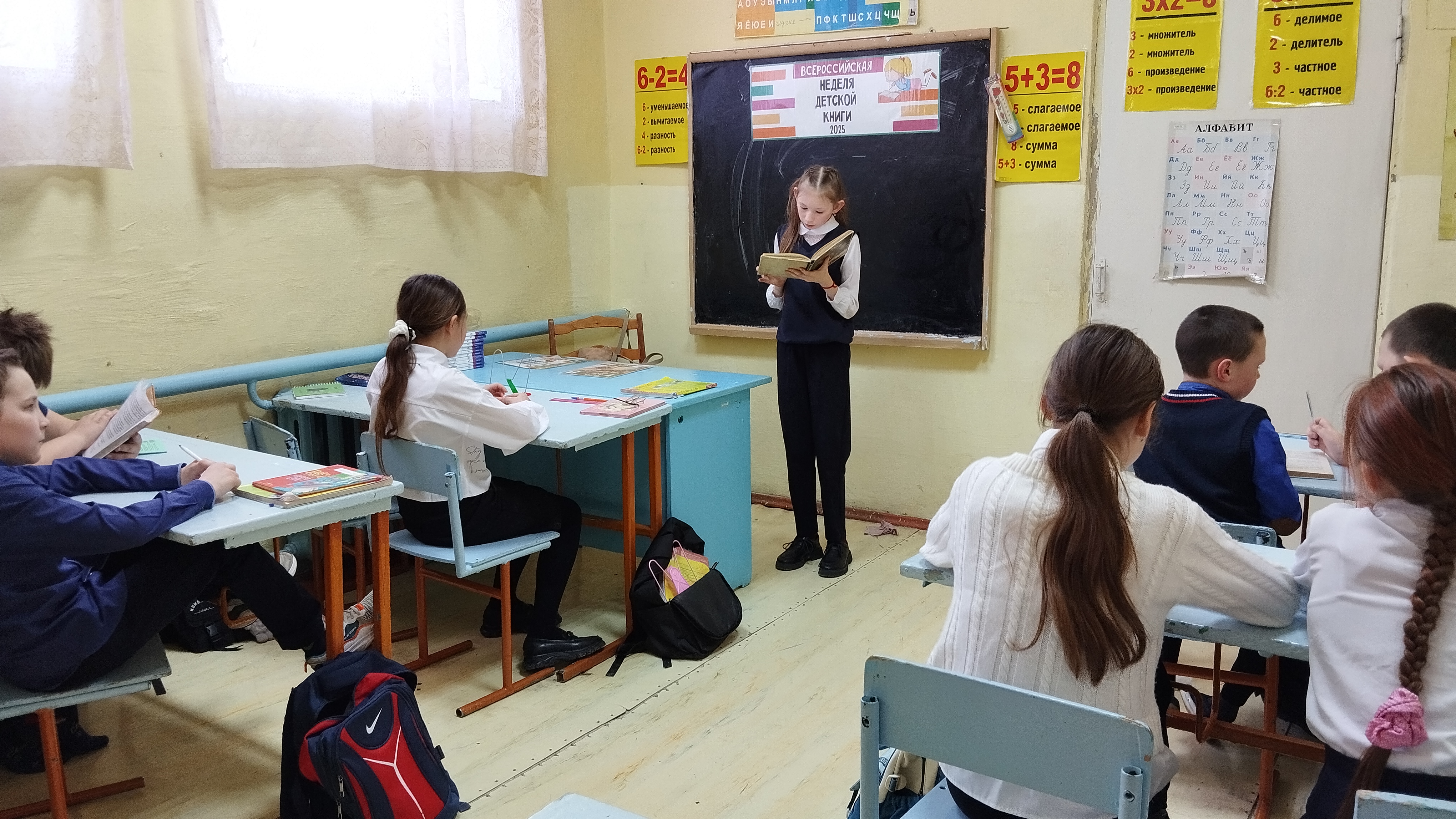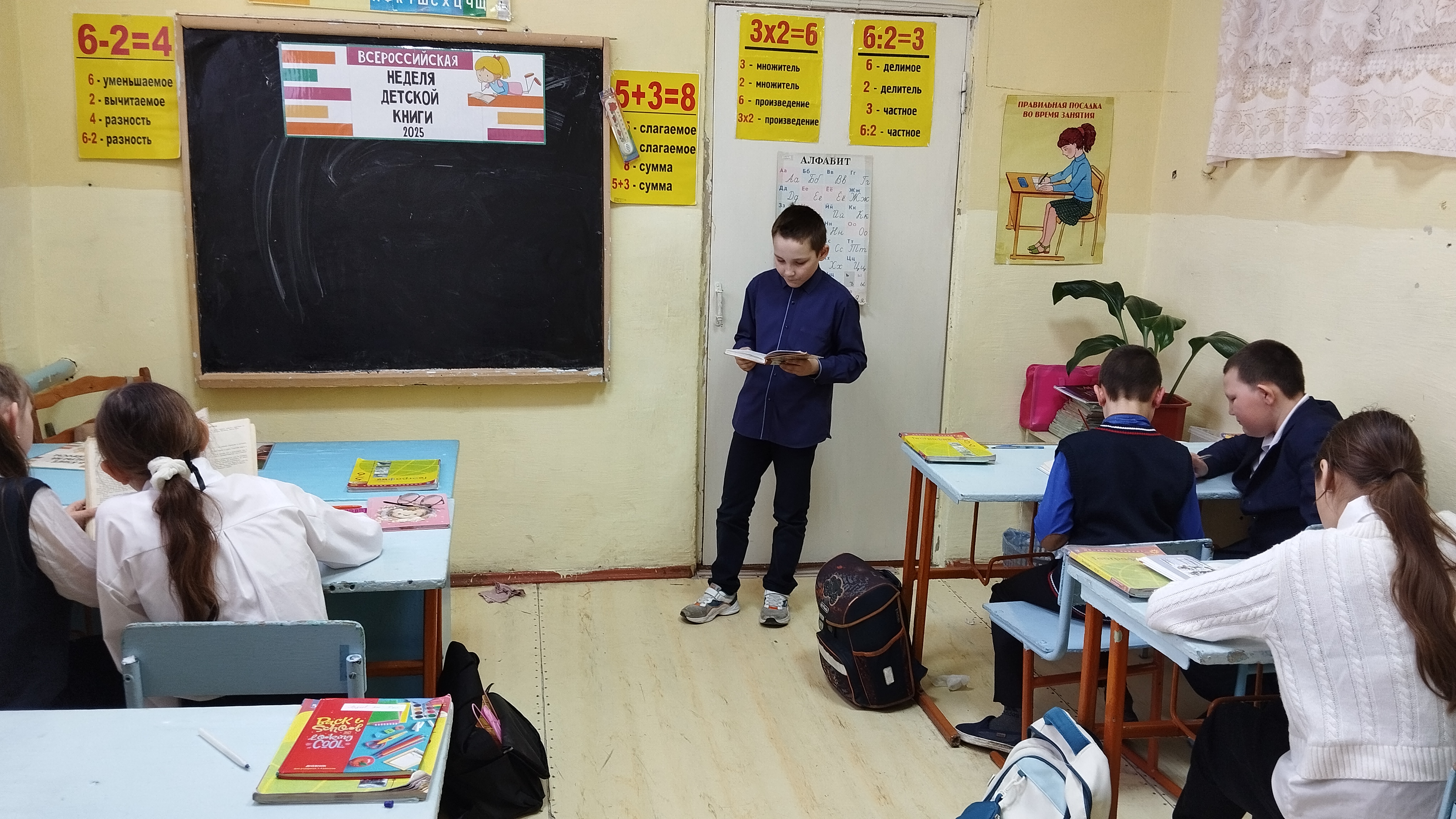 В литературном марафоне "Дети читают книги о войне" приняли участие ученики 5 класса. Библиотекарь познакомила детей со списком рекомендованной литературы для среднего школьного возраста на военную тему. Желающие прочитали отрывки из любимых произведений: "Девочка из города" Любови Воронковой, " Сын полка" Валентина Катаева, "Сто рассказов о войне" Сергея Алексеева.