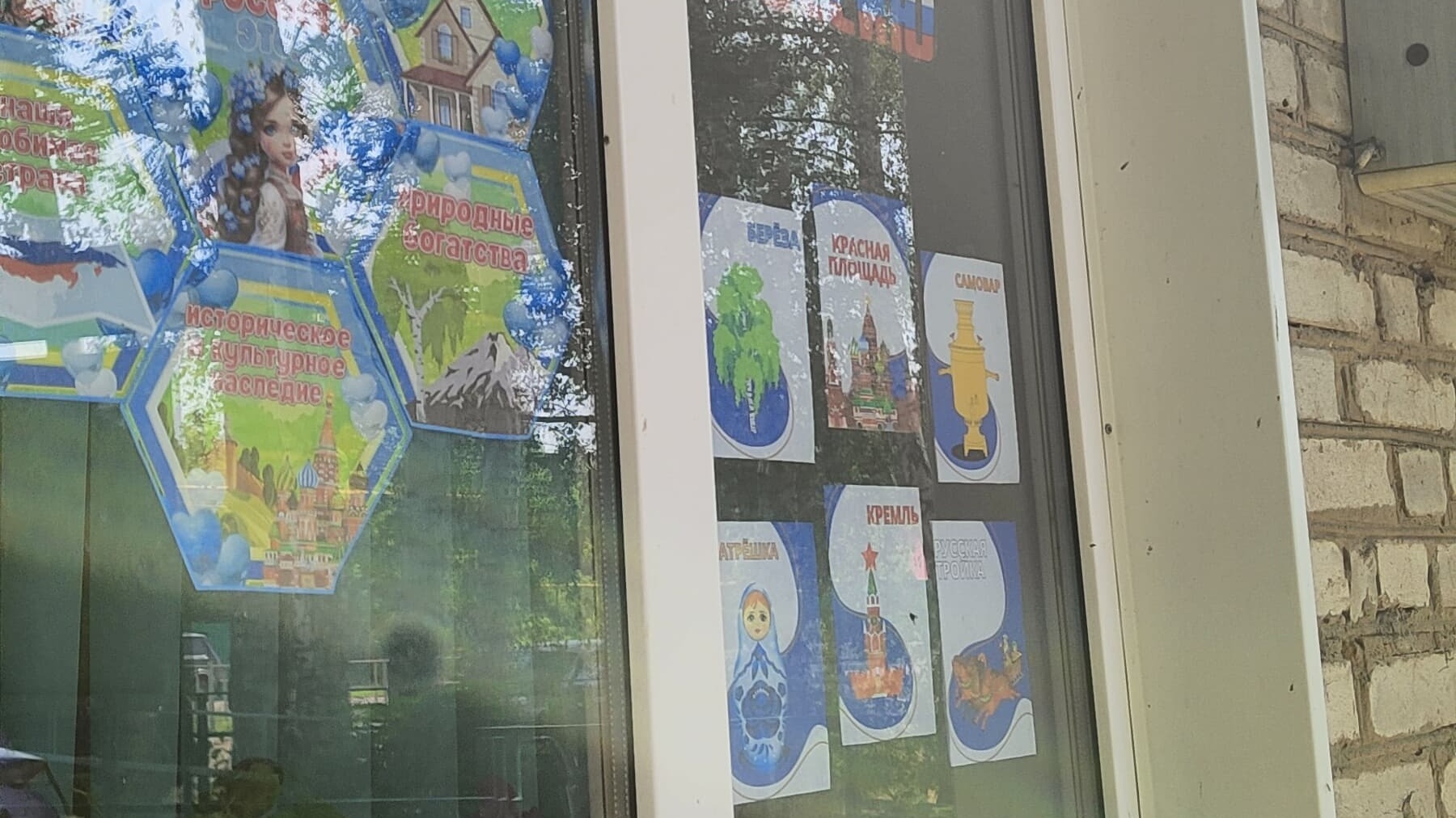 Украшение окон в честь приближающегося праздника символизирует единство всего многонационального народа, напоминает, что все несут ответственность за настоящее и будущее России.