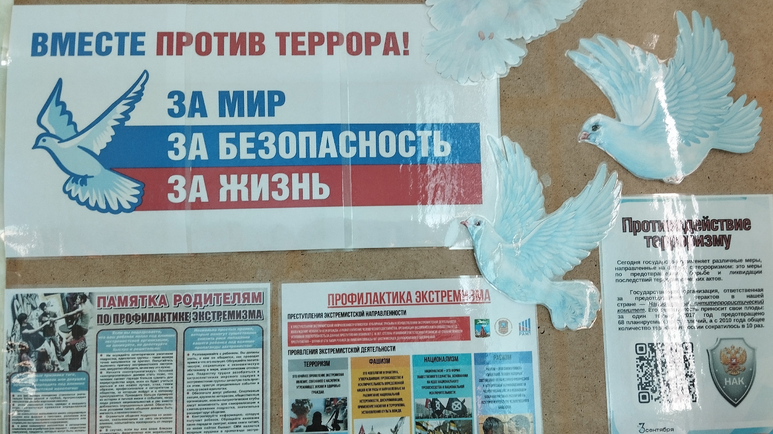 Информационный стенд "Экстремизму и терроризму - нет!" оформлен в библиотеке. Он предназначен для повышения осведомленности граждан о данных угрозах, их причинах и последствиях.